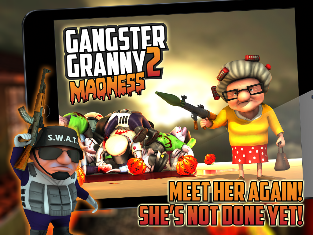 Gangster Granny 2: Madness offers different game modes in colorful environments and endless fun with more to come with free updates. You can also Earn points to get better equipment and upgrade wide range of weapons to get better scores and rank up in Leader boards.